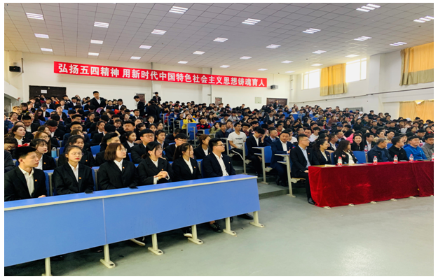 4月24日下午,我校在第二教学楼424教室隆重召开纪念五四运动100周年暨学风建设表彰大会。校领导杨化仁、王一女、张丽影、杨春光、高洪震出席大会;各单位、部门主要负责同志、教师代表和青年团员代表共计500余人参加了本次大会。大会由校团委书记何大伟主持。