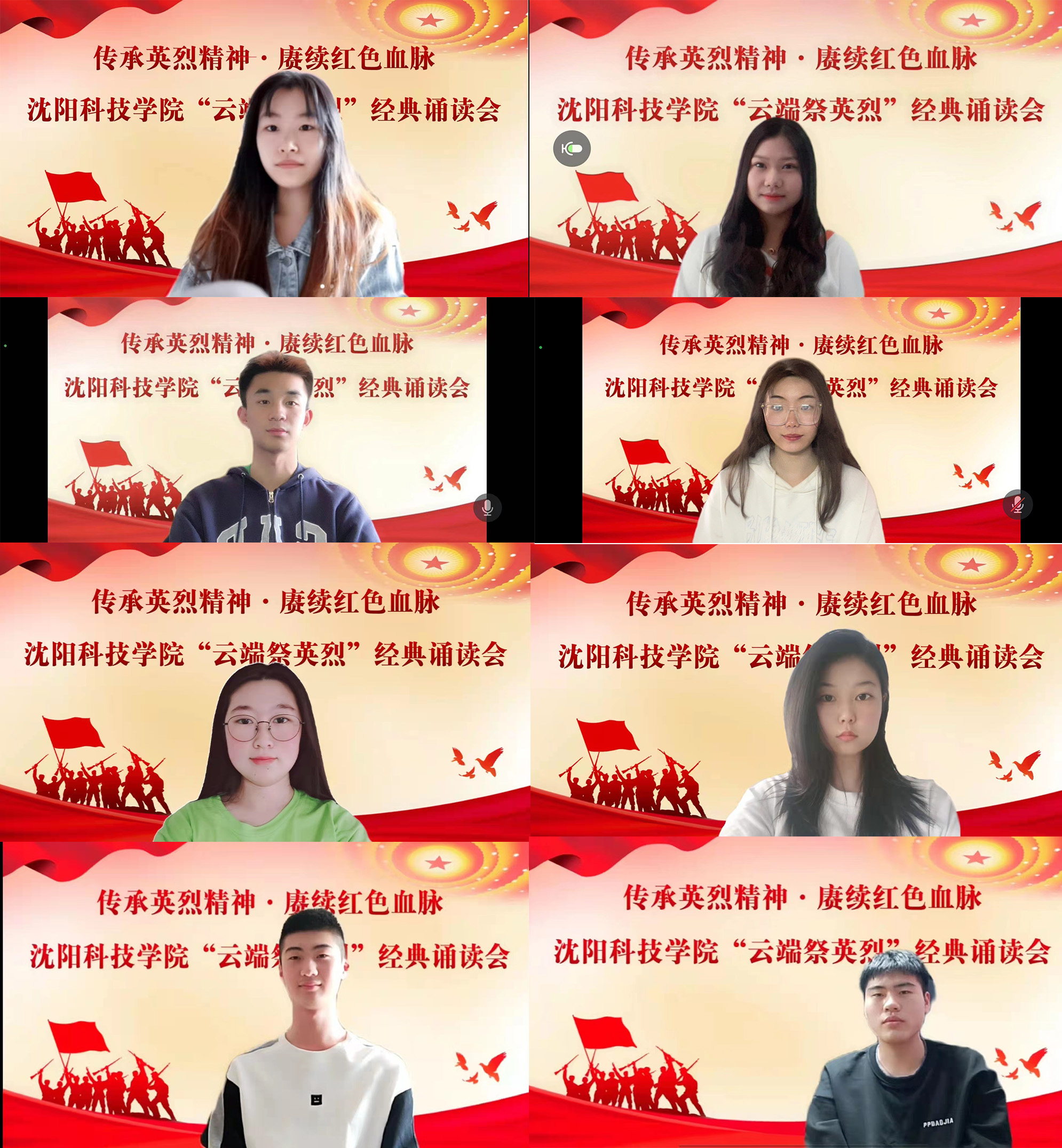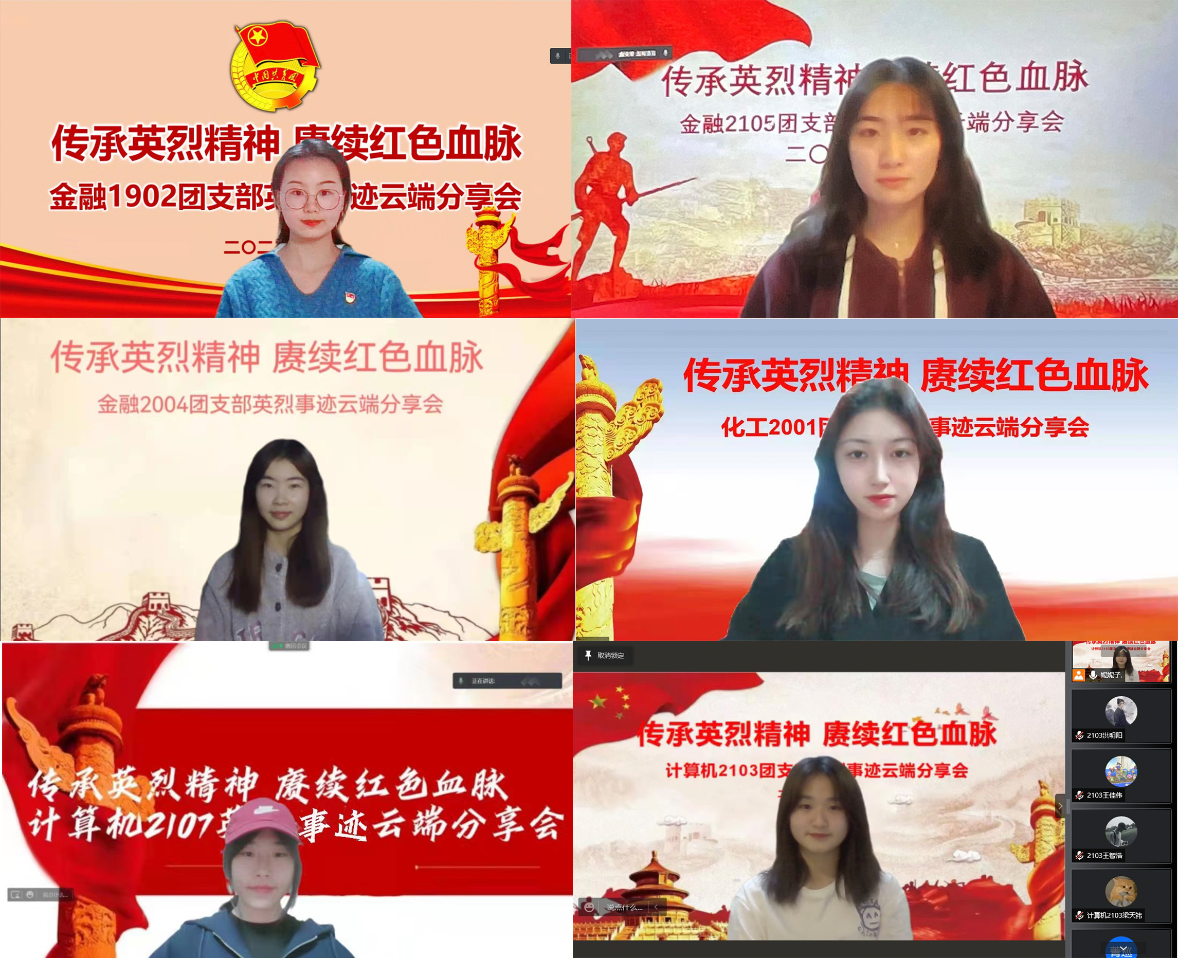 本次云端分享会以团支部为单位召开,团干部带头分享领学英烈人物功勋事迹,全校224个团支部开展了400余场分享会。分享会以诵读红色家书、讲述英烈事迹为主,通过史料回放、经典诵读等表现形式将新民主主义革命时期、社会主义革命和建设时期、改革开放和社会主义现代化建设以及中国特色社会主义新时代四个时期的英烈人物功勋事迹进行分享,带领云端广大青年“跨越时空”,深切感受革命先烈们伟大的献身精神和崇高的革命信仰。
