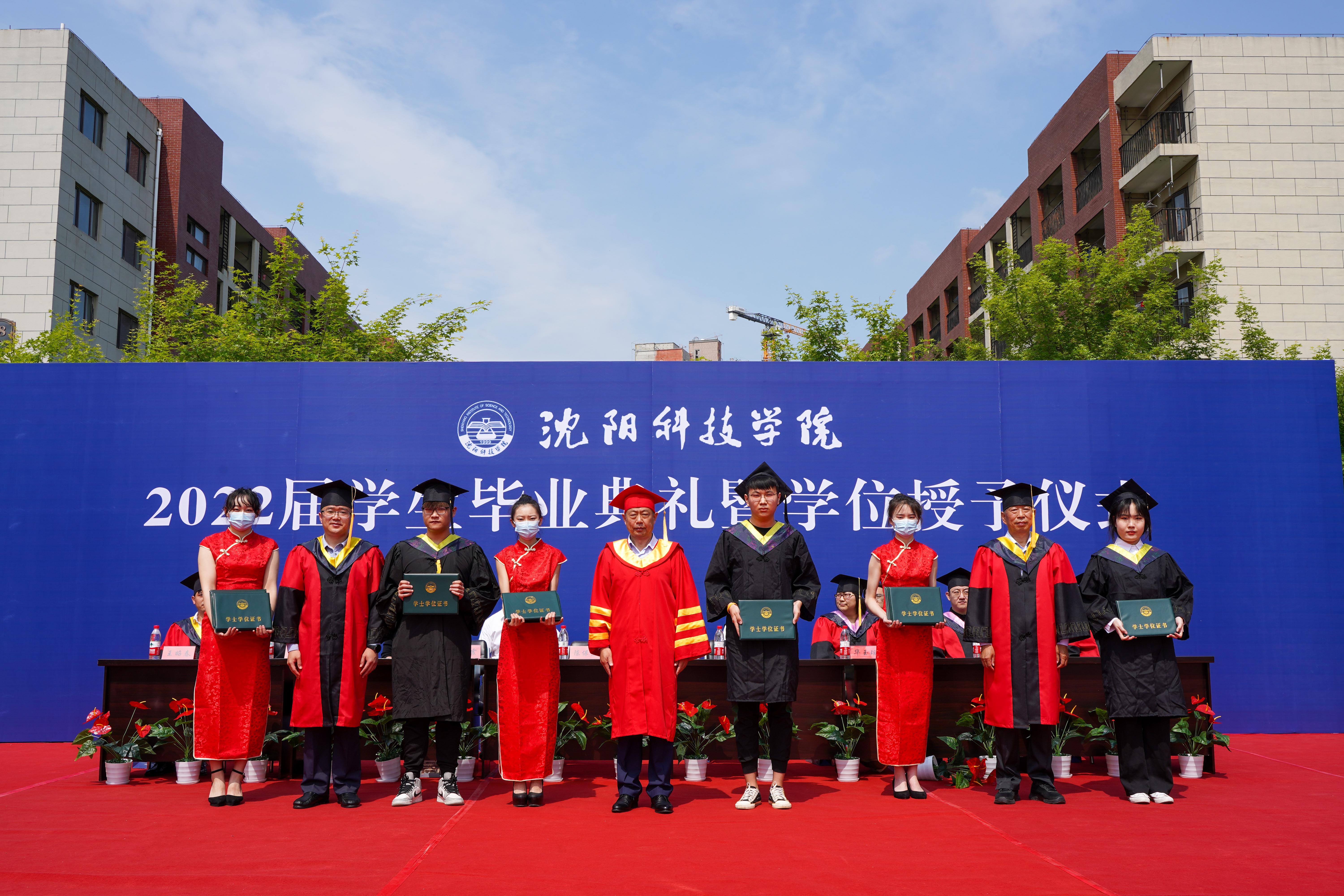 毕业典礼在庄严的国歌声中拉开帷幕。副校长袁德成宣读了2022届学生毕业名单、获得学位名单、校优秀毕业设计(论文)学生名单;副校长高洪震宣读了2022届辽宁省优秀毕业生名单、校优秀毕业生名单。校领导为获奖者颁发证书,并为获得学位的毕业生代表正冠拨穗。