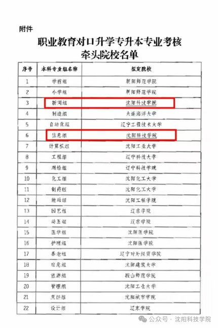 12月10日,辽宁省教育厅下发《关于公布省级职业教育对口升学专升本专业考核牵头院校的通知》,经院校申报、现场考察、专家遴选、会议决定等环节,我校成功获批2025年专升本专业考核新闻组和信息组2个本科专业组考核牵头院校。
